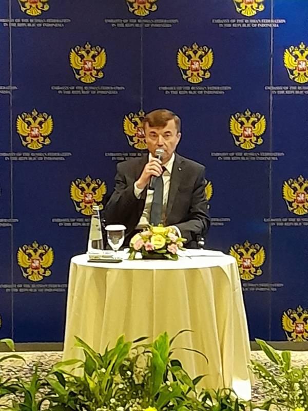 Hal itu disampaikan Duta Besar Berkuasa Penuh Republik Federasi Rusia untuk Indonesia Sergei Tolchenov di sela-sela acara press briefing dengan sejumlah wartawan Indonesia di Hotel Borobudur, Jakarta, Jumat (19/12). Tolchenov mengaku lega karena peristiwa penandatanganan kesepakatan perdagangan bebas yang ditunggu-tunggu itu akhirnya datang juga dan menjadi tonggak sejarah baru dalam hubungan perdagangan Indonesia dengan lima negara di kawasan Eurasia termasuk Rusia.